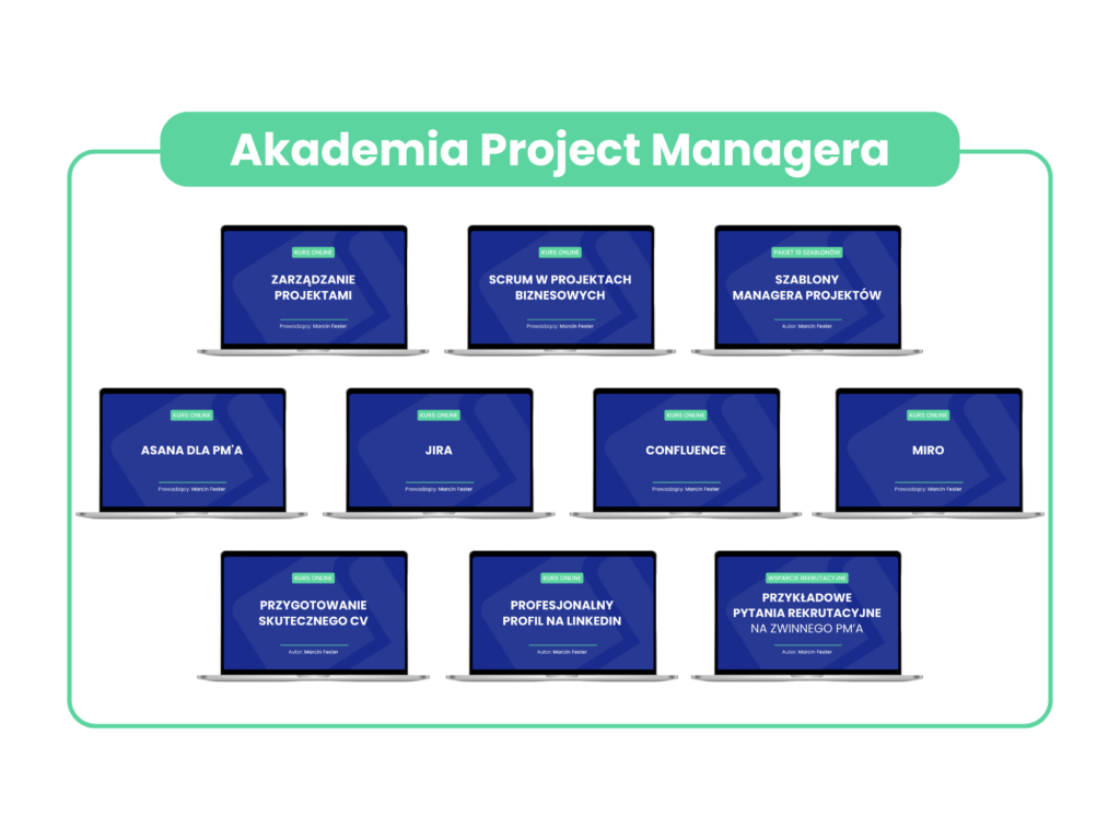 Cała wiedza dotycząca zarządzania projektami od A do Z. Treść ułożona w kolejności chronologicznej, abyś wiedział/a co krok po kroku robić prowadząc projekt.