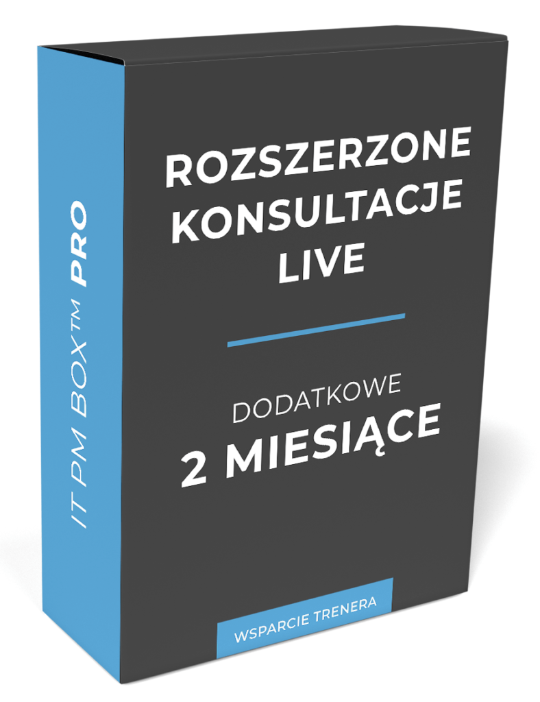 Pakiet wsparcia trenera w pakiecie IT PM BOX™ PRO jest szerszy niż we wszystkich dostępnych kursach na żywo. Sam zakres obejmuje 4 kursy online, za które normalnie zapłaciłbyś kilka tysięcy złotych.